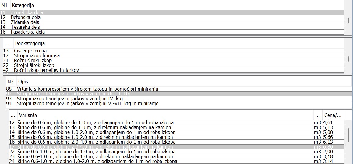 - Popisi s cenami za gradbena in zaključna dela, strojne inštalacije in elektroinštalacije